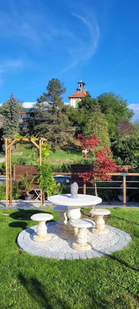 Je réalise des prises de vue au bord de la piscine ou dans le salon de jardin en pierre pour un rendu haut de gamme et naturel. (accès à la piscine soumis à conditions + supplément)